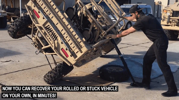 The Electric Jack stores using its own force and is powered with a single drill battery. Loaded with features the Electric Jack is truly a multi-function trail tool that can even perform vehicle recovery.