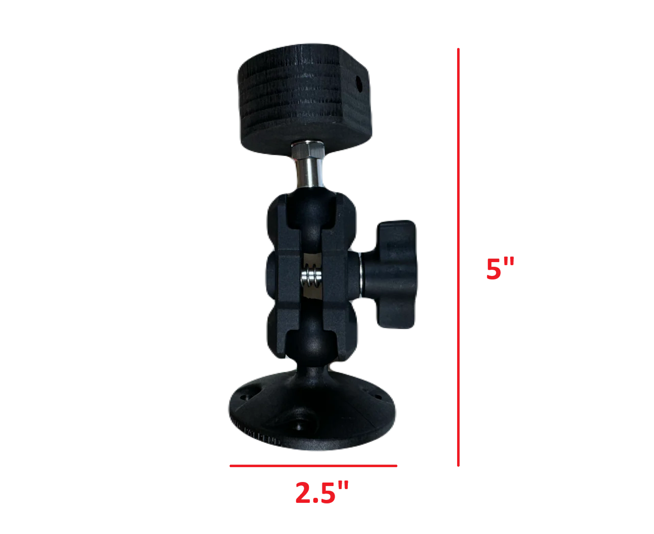 This RAM mount is constructed of aluminum and heavy duty polyethylene. Designed to be bolted to a flat surface, the mount will allow you to pivot the angle of the dish to a desired angle. Bolts into your dish using the pole mount that comes with your MINI system.Â