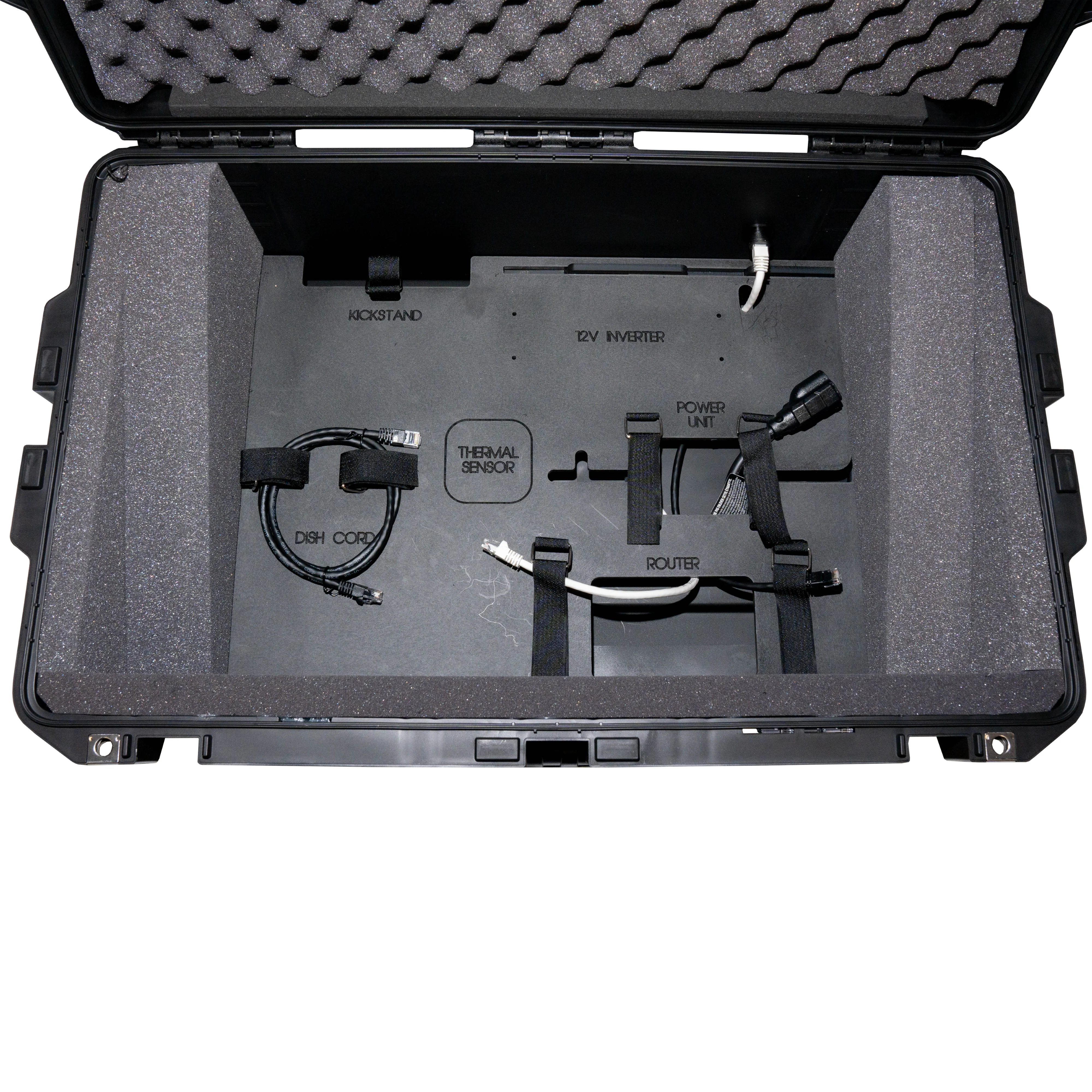 - ETHERNET PORTS: Starlinks router for this dish allows the user to add up to (2) hard wired ethernet connections to the system. You can add additional ethernet ports to your case allowing you to run those hard-wired connections externally through weatherproof ports on the rear of your case.